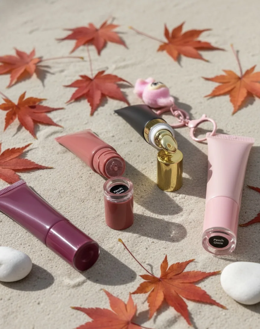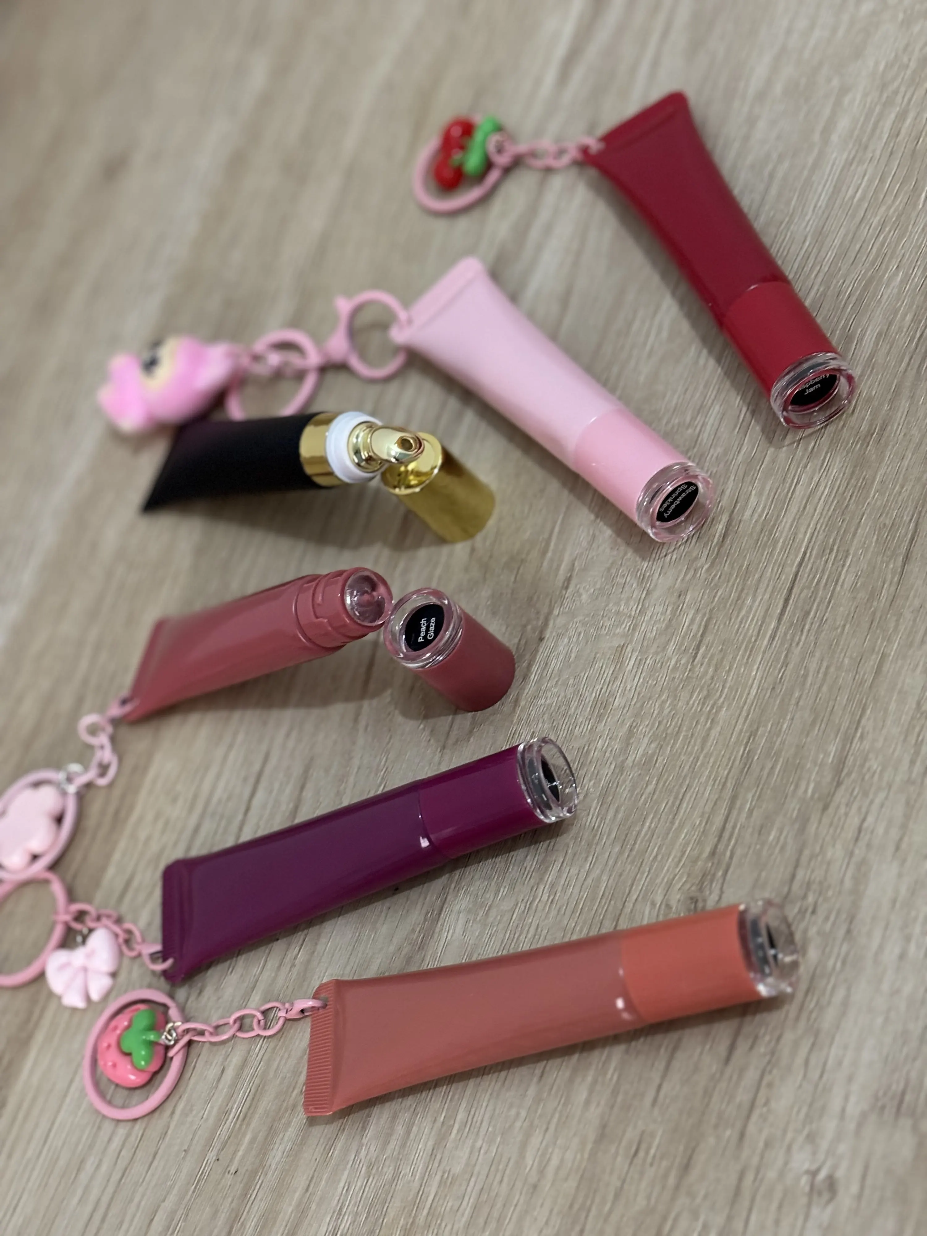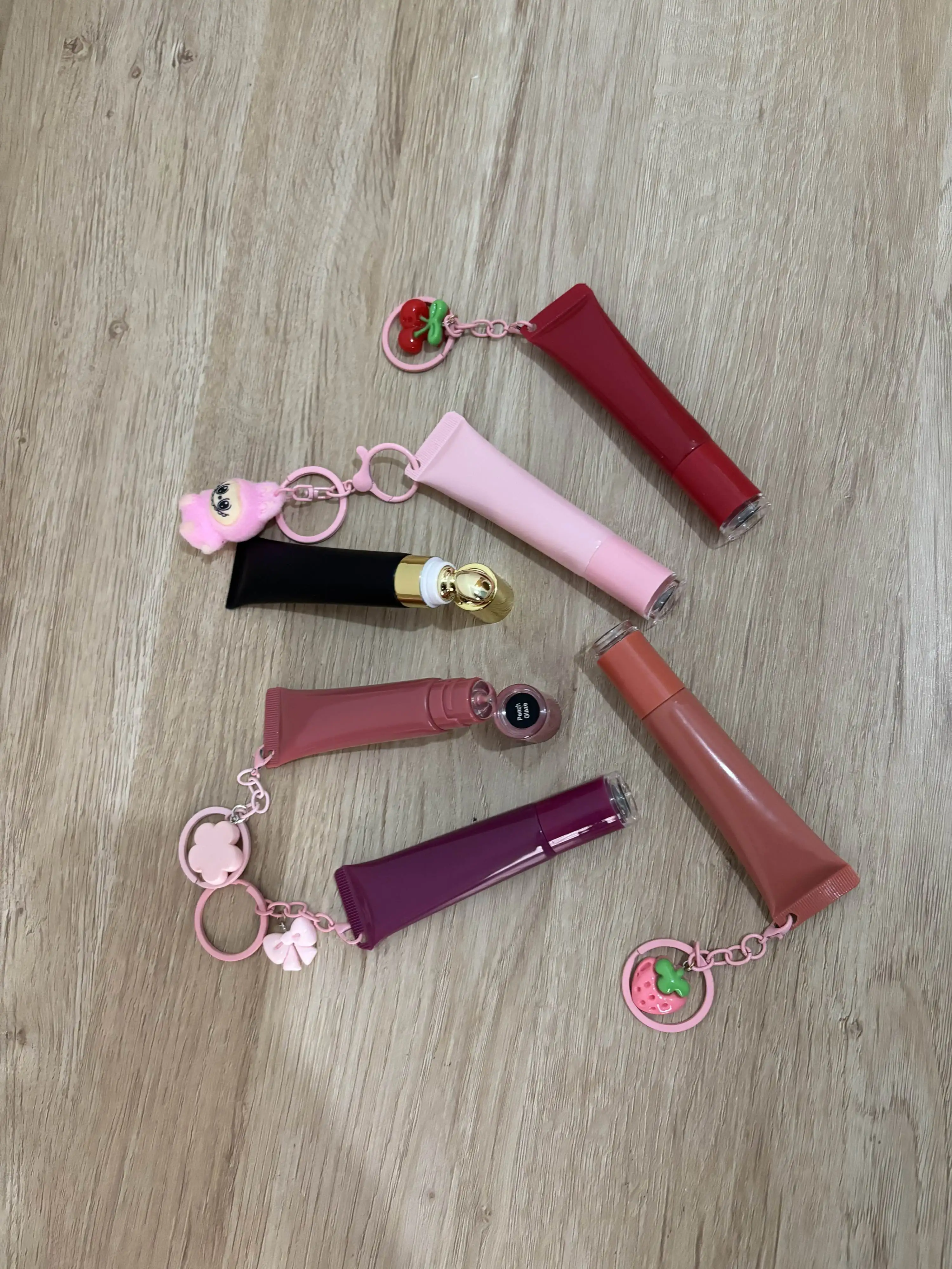 ملمع شفاه بسلسلة مفاتيح بالجملة، لطيف وردي لامع شفاف لنفخ الشفاه، مرطب نباتي بشعار مخصص وعلامة تجارية خاصة