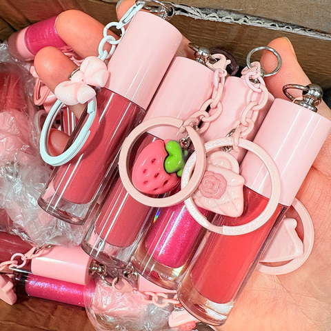 Wholesale Cute Pink Glossy Clear Plumping Keychain Lip Gloss Custom Logo Vegan Moisturizing Lipgloss Private Label Lip Gloss